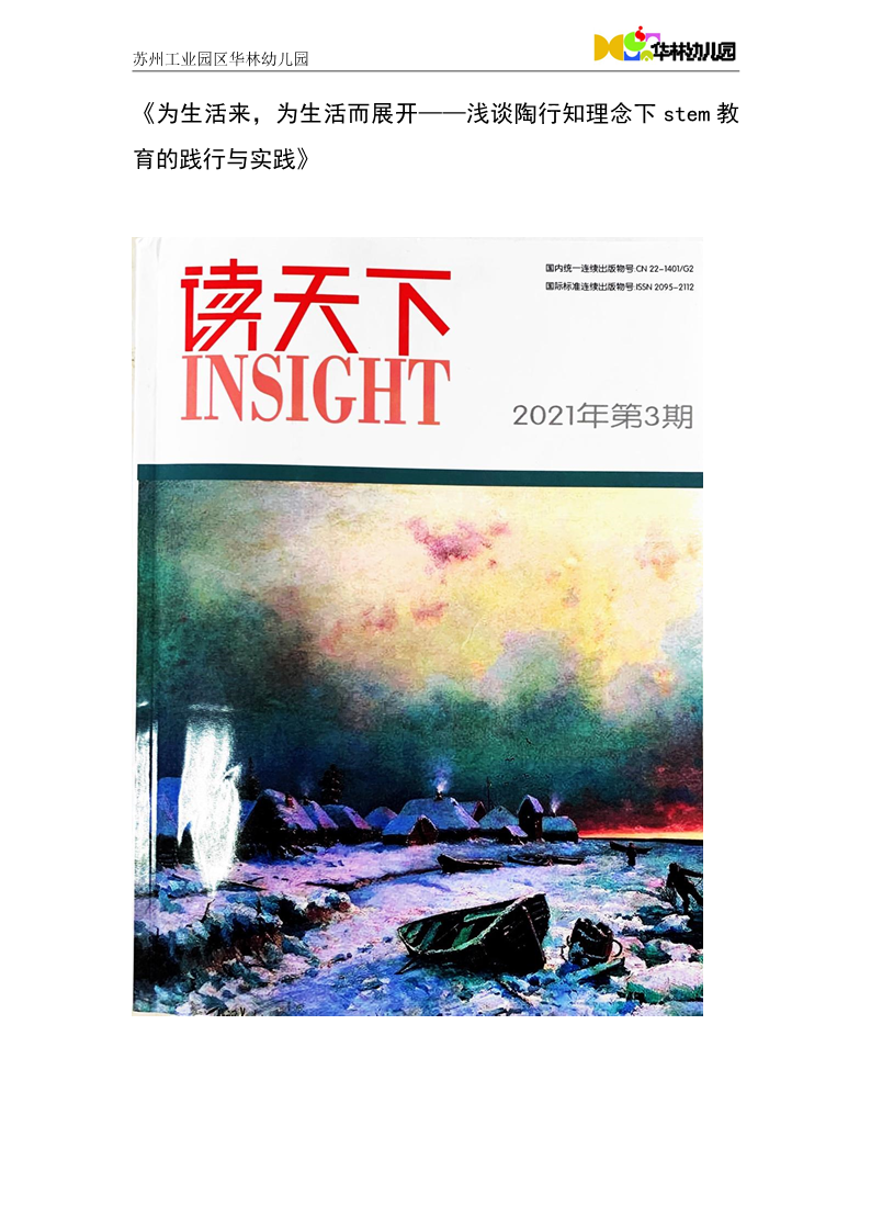 2021年第三期《读天下》为生活来,为生活而展开——浅谈陶行知理念下stem教育的践行与实践 来源: 发布时间:2022-12-07 13:07:40 浏览次数: 次 【字体:小 大】 分享到: 【打印正文】